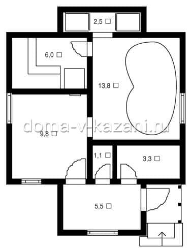 Бассейн – 13,8 м2 Баня, спроектированная с учетом размещения в ней композитного бассейна «Барселонет» французского производства, представляет собой уютный и функционально удобный домик для отдыха. Здесь есть все необходимое для оздоровительных водных процедур. Классические «внешние данные» бани с бассейном «Барселонет» востребованы и не кажутся выделенными в застройке любого уровня.