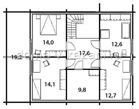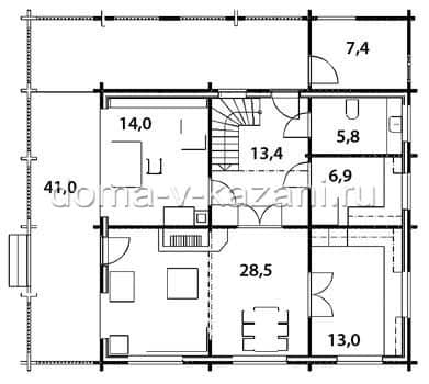 Дом выполнен из клееного бруса сечением 182 х 195 мм, не требующего внутренней отделки.