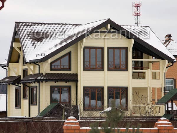 Сборка стенового комплекта из клееного бруса сечением 200*185 мм/клееного бруса сечением 160*185 мм/профилированного бруса сечением 190*165 мм/каркасной технологии с утеплением 200 мм с чистовой обшивкой уличных стен.