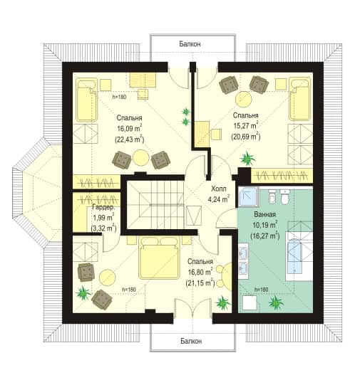 Проект дома Агатка - это проект одноэтажного дома с мансардой для семьи из четырех-пяти человек.