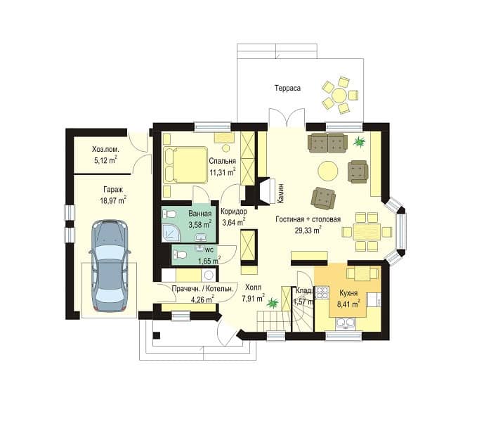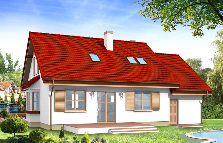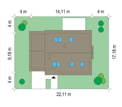 Проект дома Аккуратный можно заказать в зеркальной версии с гаражом справа.