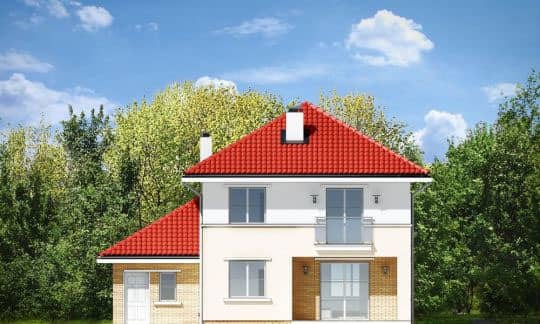 Компания MG Projekt располагает и вариантом проекта в зеркальном отражении с гаражом слева от дома.