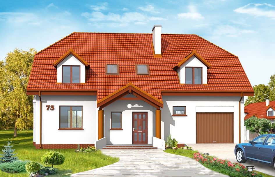 Компания MG Projekt располагает проектом дома Акациевый и в зеркальном отражении с гаражом слева от дома.