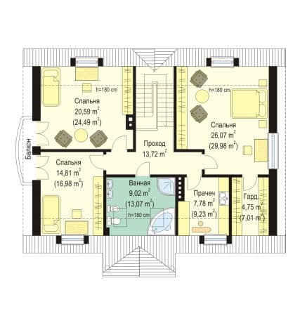 высота строения - 8,26 м (8,66 м с подведением фундамента)