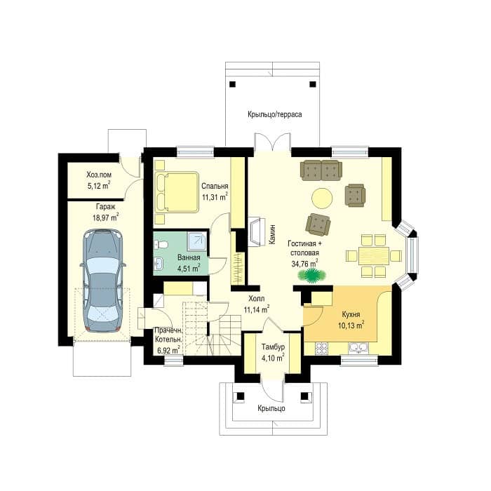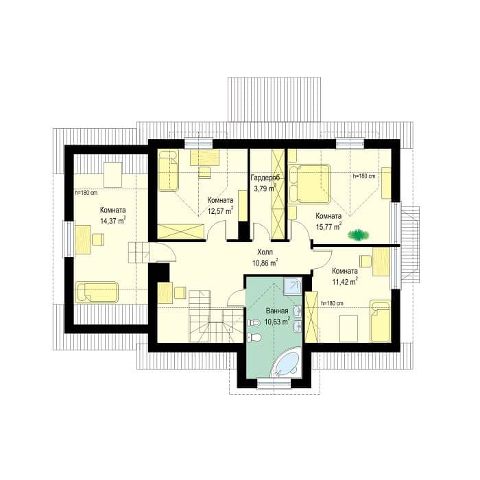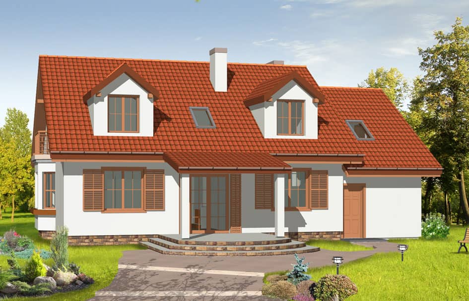 Проект дома Аккуратный 3 это проект для семьи из 4-5 человек. Создавался, как одна из версий проекта Аккуратный. Входной портик на фронтальном фасаде и терраса со стороны сада придают строению более законченный вид.