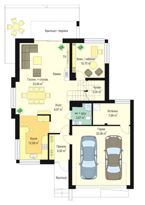 Проект дома Гелиос доступен в зеркальном варианте с гаражом справа от дома.