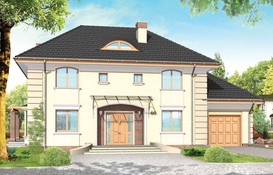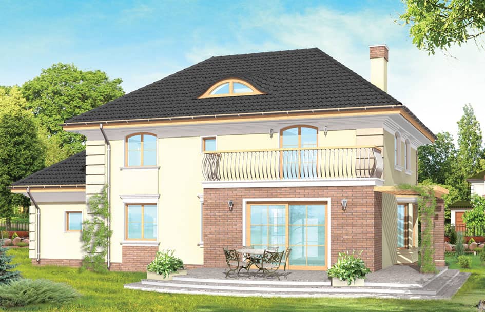 Проект дома Вилловый это двухэтажный особняк, для большой семьи, на 6-7 человек, а своим внешним видом ннапоминающий средиземноморскую виллу.