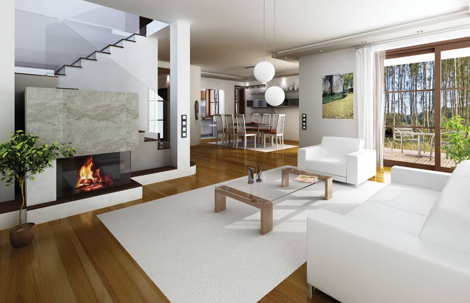 Внутри дома Кассиопея 2, на первом этаже запланированно: дневную, состоящую из гостиной со столовой зоной, холла, частично открытой кухни, а также хоз. помещения и гаража. На втором этаже расположен аппартамент родителей, с гардеробом и балконом, а также две детские спальни с ванной и дополнительная комната.