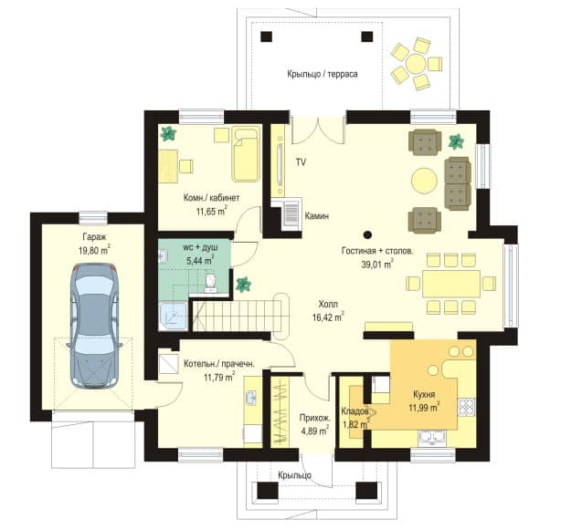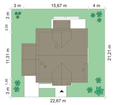 Проект дома Любимчик можно заказать в зеркальной версии с гаражом слева.