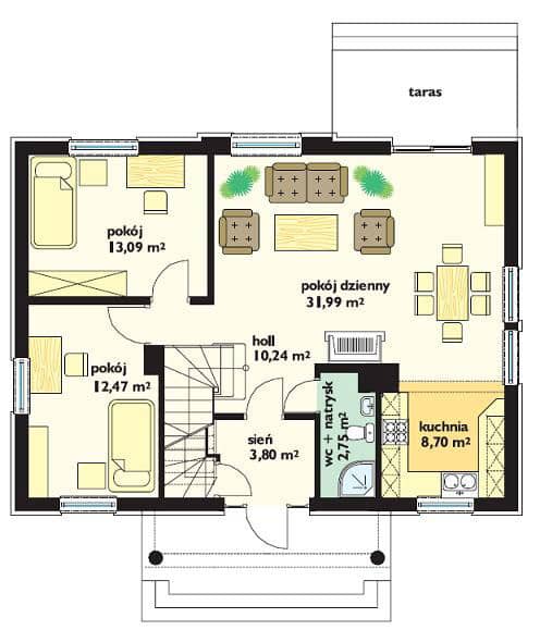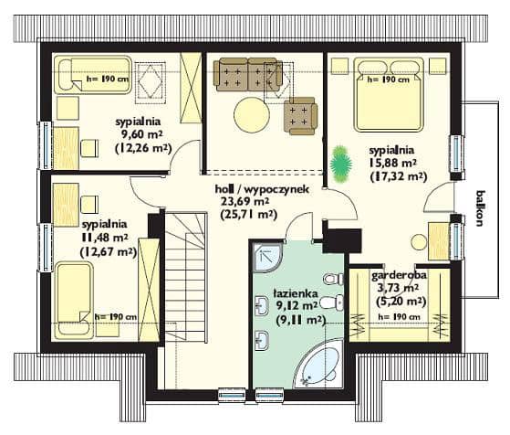 Проект дома Медовые Года, идеален для большой семьи. Прекрасный, солидный дом для семьи из 4 - 6 человек. Дом одноэтажный с жилым чердаком и подвалом, покрыт двускатной крышей с большой фронтальной люкарной. Фасады украшают: представительный, входной фронтон дома поднесенный на колоннах, балкон и садовая терраса. На первом этаже запроектировано: просторную гостиную с камином, совмещенную с холлом в котором презентабельная лестница и открытую кухню, ванную комнату, две комнаты и чулан под лестницей на чердак. На чердаке расположены: три спальни, среди которых, аппартаменты родителей с отдельным гардеробом и балконом, ванная комната, а также большой холл, который можно заменить на дополнительную комнату.