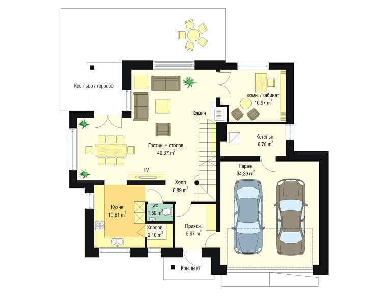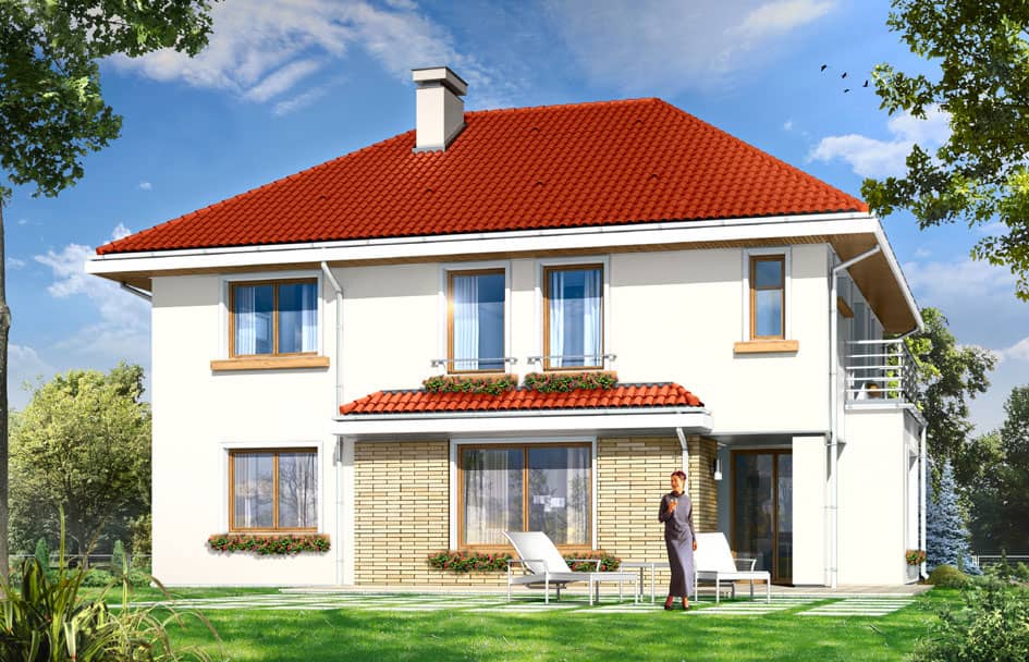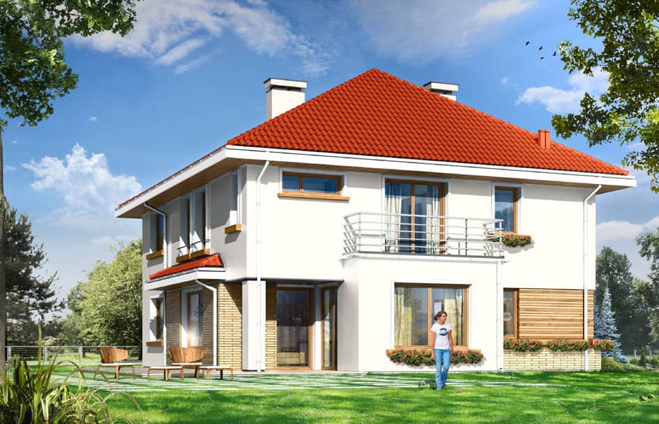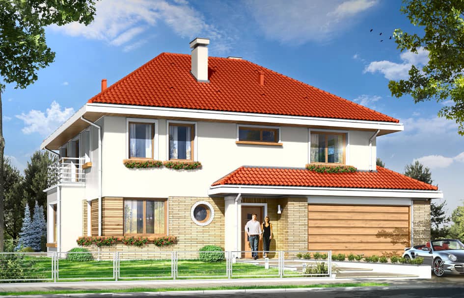 Проект дома Орхидея это вместительный двухэтажный коттедж, созданный для семьи из 4-5 человек, с гаражом.
