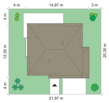 площадь застройки - 153,33 кв.м (161,71 кв.м с террасами)