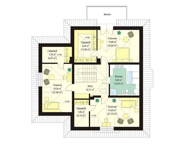 Архитектурное решение дома классическое, так что впишется он в практически в лубую окружающую среду. Детали фасадов служат украшением довольно простой формы строения.