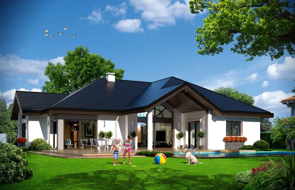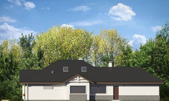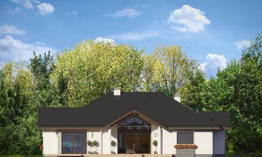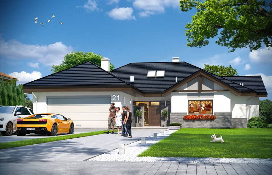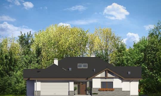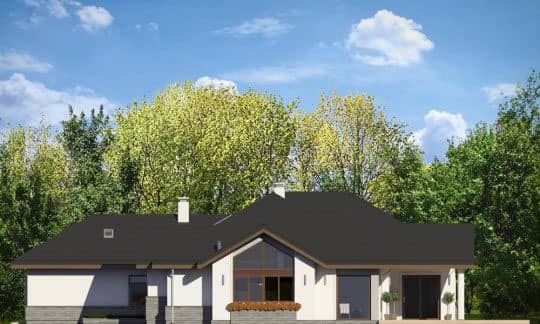 Проект дома Раскидистый 2 является версией популярного проекта. На этот раз дом имеет новую функциональную планировка, отличный интерьер, а также новую форму и детали отделки фасада здания. Дом бунгало, предназначен для проживания для семьи из 4-6 человек. Его обширный план обеспечит удобные, даже роскошные условия жизни для будущих жильцов. С архитектурной точки зрения, дом сочетает в себе современную форму и детали традиционного дома с многоскатной крышей.
