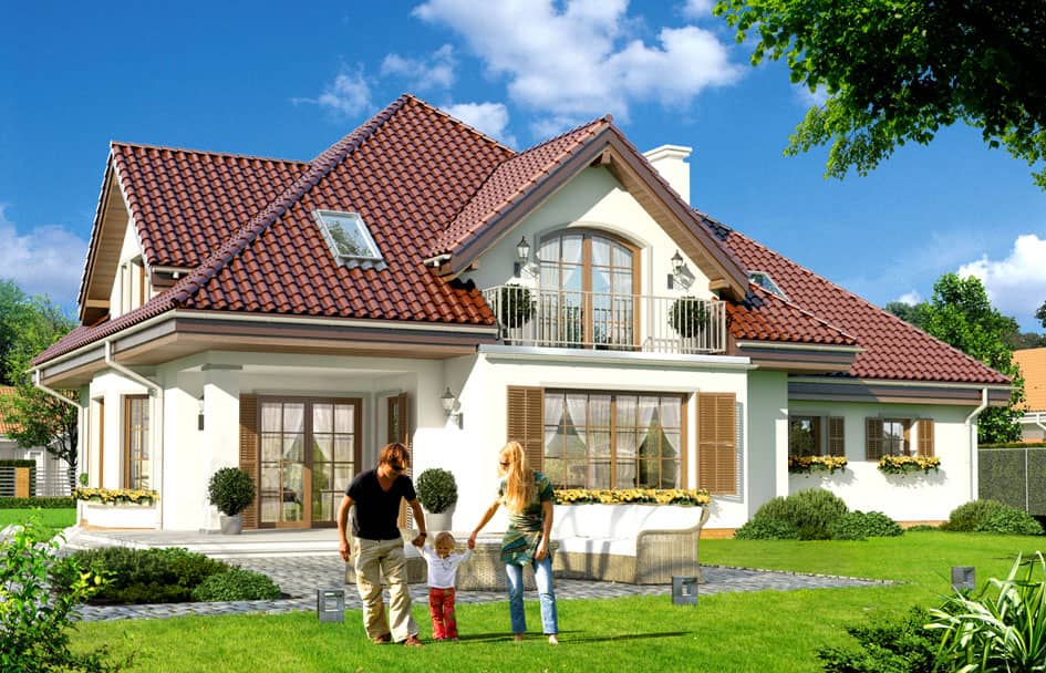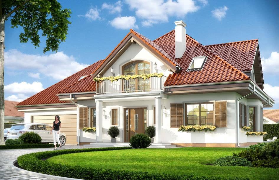 Проект дома Ромео - это классический, одноэтажный дом с жилым чердаком для семьи из 4 - 6 человек. Односемейный дом с пристроенным двухместным гаражом, покрыт многоскатной крышей. Прямоугольное по форме строение напоминает по стилю дореволюционные усадьбы. Дом имеет прекрасную изоляцию в связи с чем, легко может быть энергосберегающим. Фасады украшают: входное крыльцо над которым расположен балкон на колоннах, широкие двери со вставками из стекла, эркеры,остекления открывающие вид на сад, балкон, терраса, крытое садовое крыльцо и окна со ставнями.