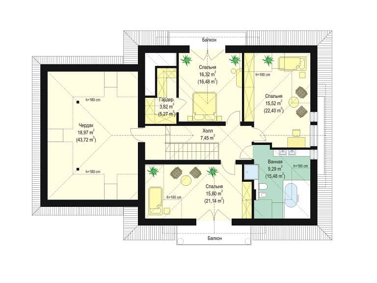 площадь крыши - 281,04 кв.м