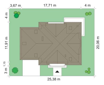 минимальная ширина участка - 25,38 м
