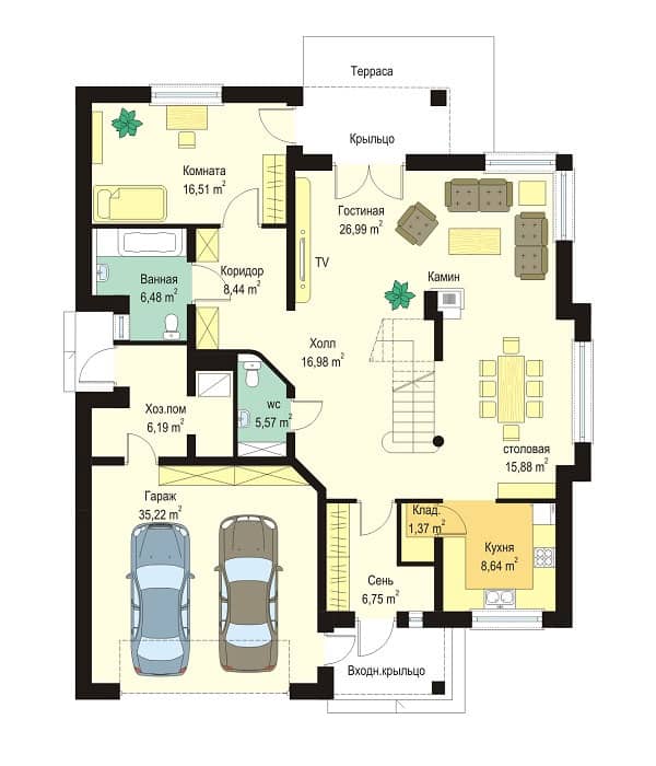 Проект дома Сонет можно заказать в зеркальном варианте с гаражом справа.