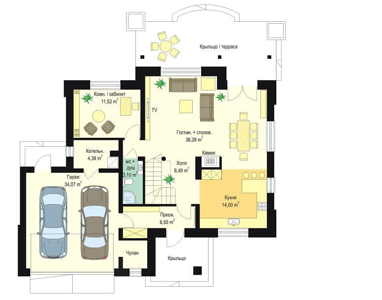 Проект дома Тукан можно заказать и в зеркальной версии с гаражом справа.