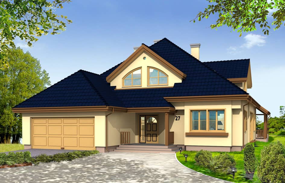 Проект дома Хорнувек доступен в зеркальном варианте с гаражом справа.