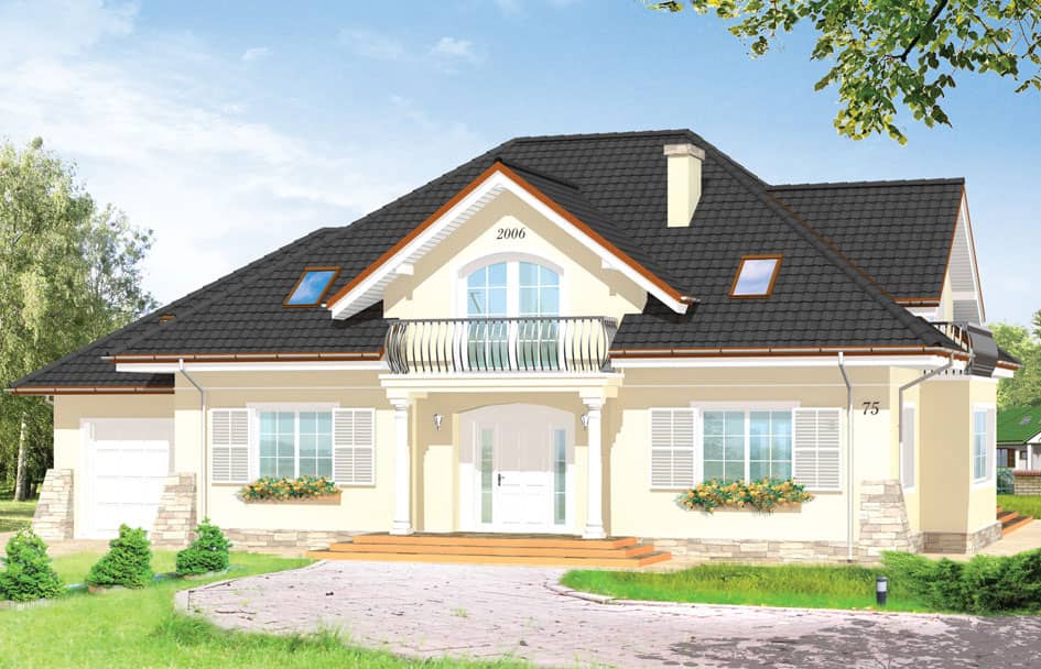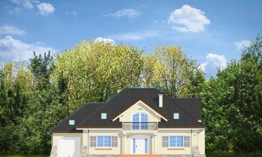 Проект дома Бенедикт 3 - это удобный дом с традиционной архитектурой, предназначенный для семьи из 4 - 6 человек. Одноэтажное строение с жилым чердаком, прямоугольной конструкции с пристроенным гаражом и многоскатной крышей.