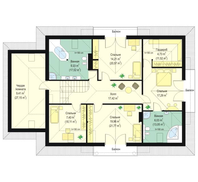 площадь крыши - 352 кв.м