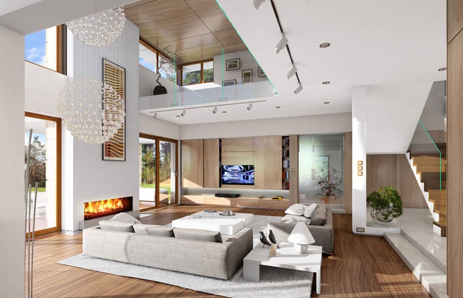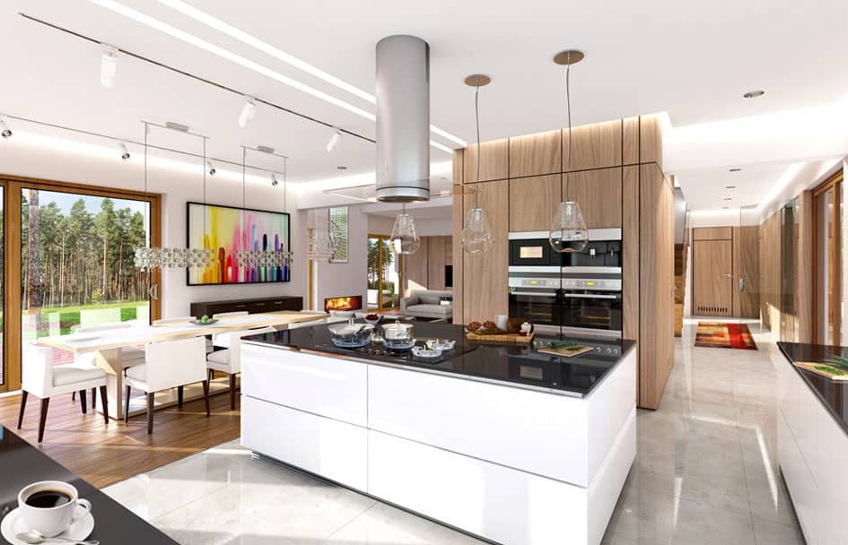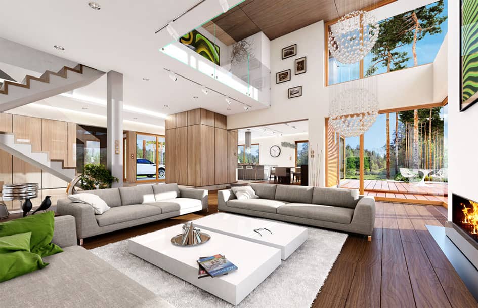 Другие остекления: в столовой, на кухне, спальни, или при входе в дом еще более усиливают эффект пространственности интерьера. Пространство это роскошь! - Интерьер дома был создан при руководстве этой идеи. На первом этаже в открытая большая дневная зона - гостиная, столовая, зал, кухня. На первом этаже также расположена дополнительная комната - офис или гостевая спальня. На втором этаже спальня родителей и детей, с ванными комнатами и гардеробными.