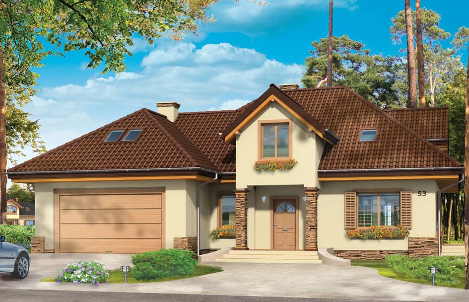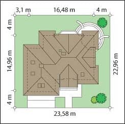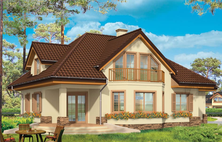Проект дома Майя 3 это одна из версий дома Мая, в этот раз уменьшенная, чтобы дом мог поместиться на меньшем участке. Благодаря замене некоторых элементов декорации фасада дом стал дешевле в постройке.