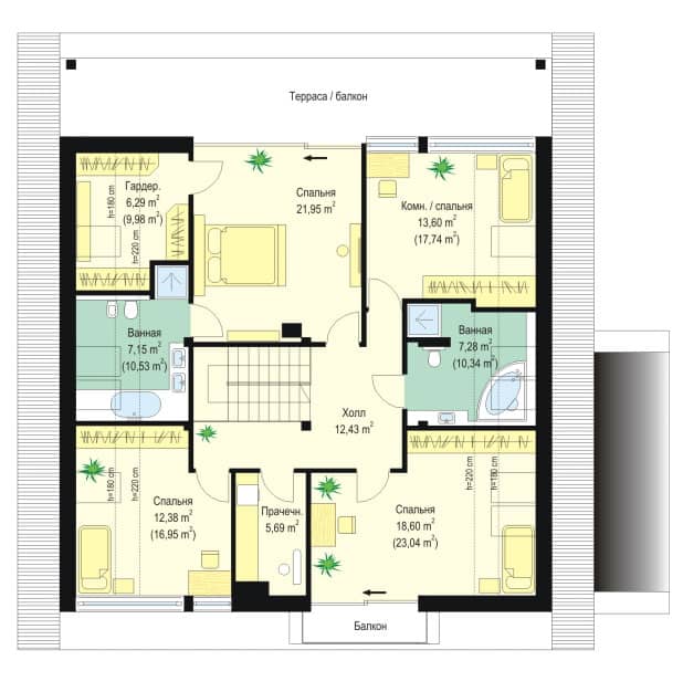 высота помещений - 2,8 м
