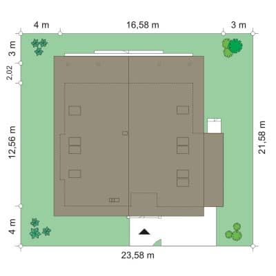 минимальная ширина участка - 23,58 м