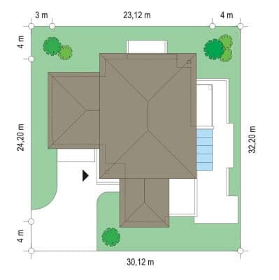 Проект дома Престижный можно заказать в зеркальном варианте с гаражом справа.