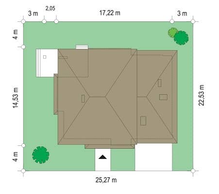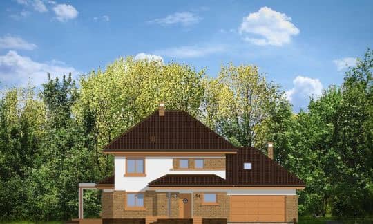 Проект дома Сладкий доступен в зеркальной версии с гаражом слева.